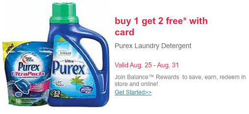 Walgreens currently has Purex laundry detergent buy one get 2 free (you will need their store card in order to get this deal, cards can be obtained free of charge in store)